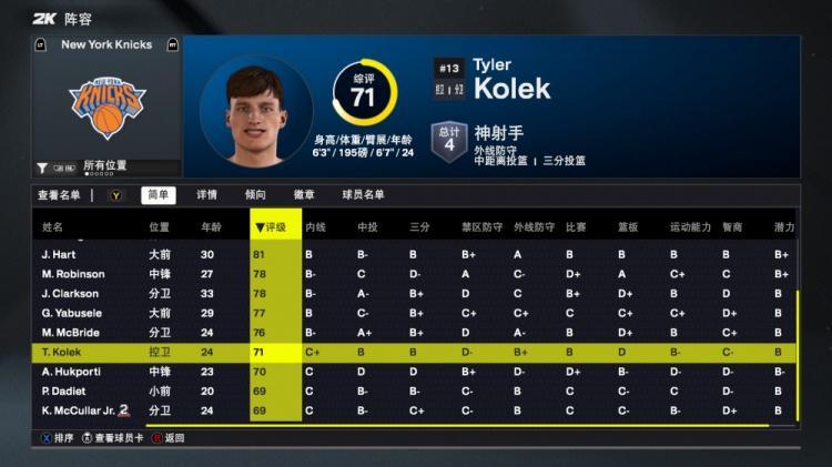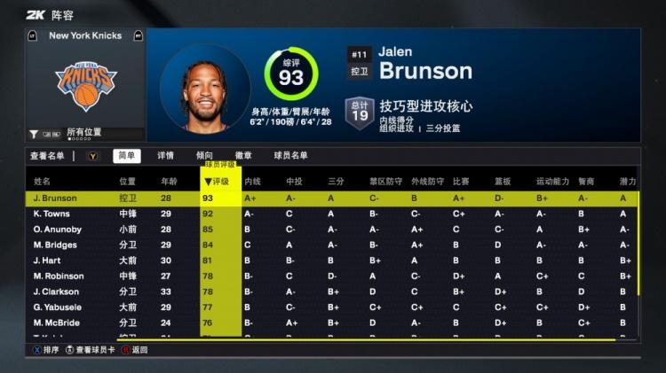 2K26尼克斯能力值:先发五虎均80+!布伦森93 唐斯92 克拉克森78